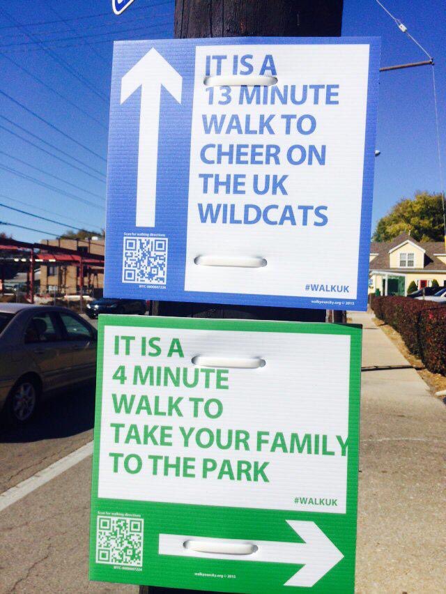 @WalkUKY posted these photos of signs that encourage walking in Lexington, Kentucky.
